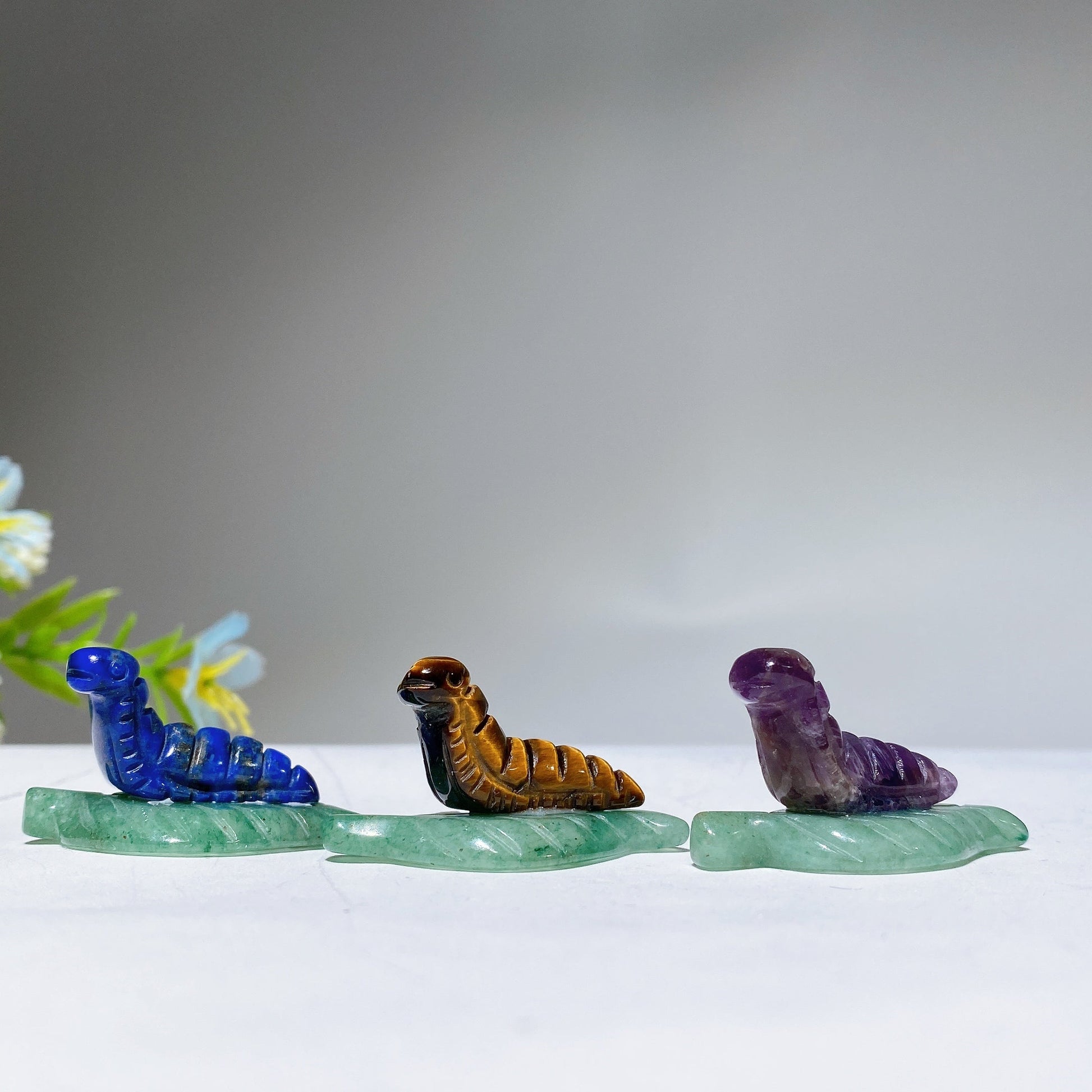 1.3" Crystal Silkworm on Green Aventurine Leaf Carving Crystal Healing Bulk Wholesale