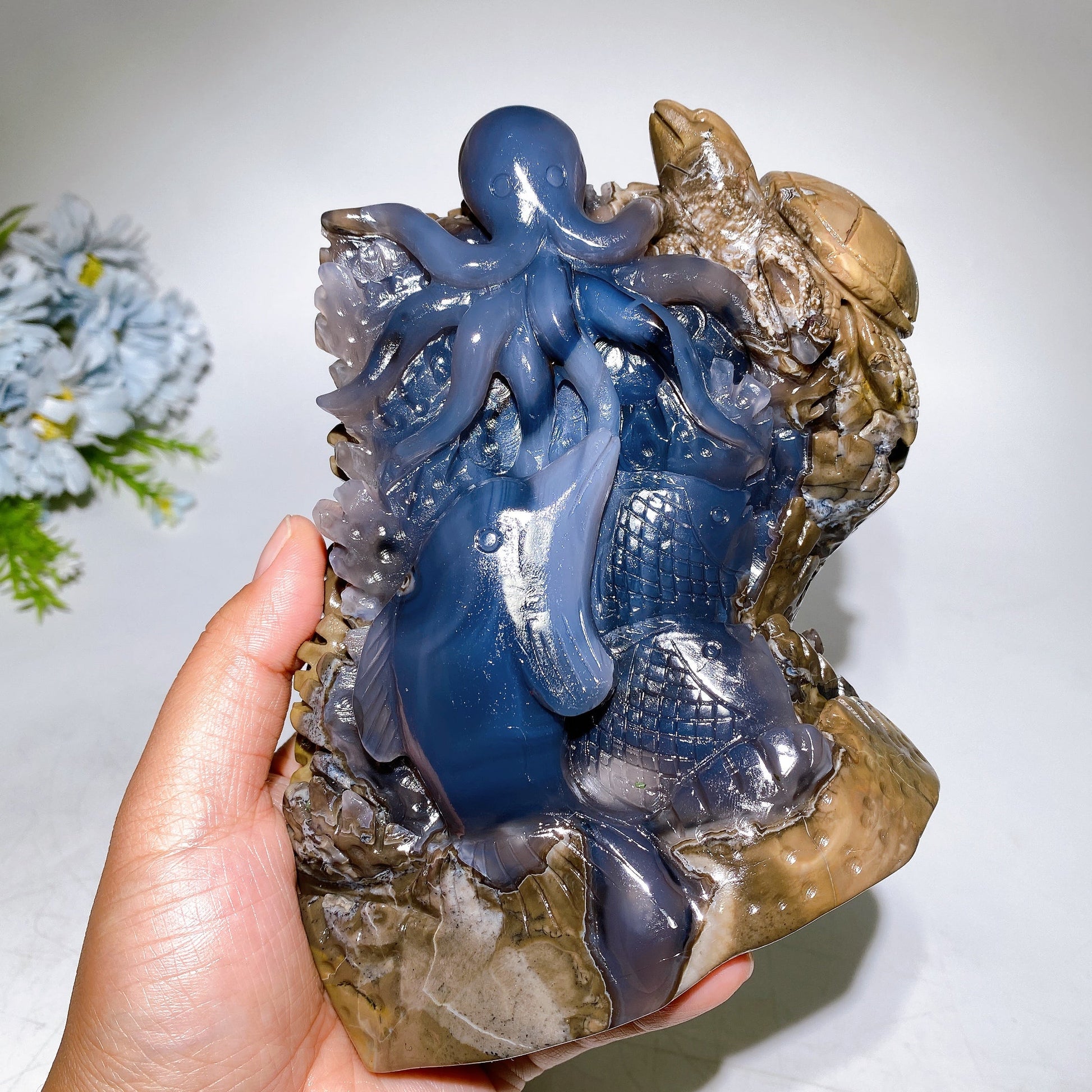 15.5cm Unique UV Reactive Volcanic Agate Ocean World Carving Crystal Healing Bulk Wholesale