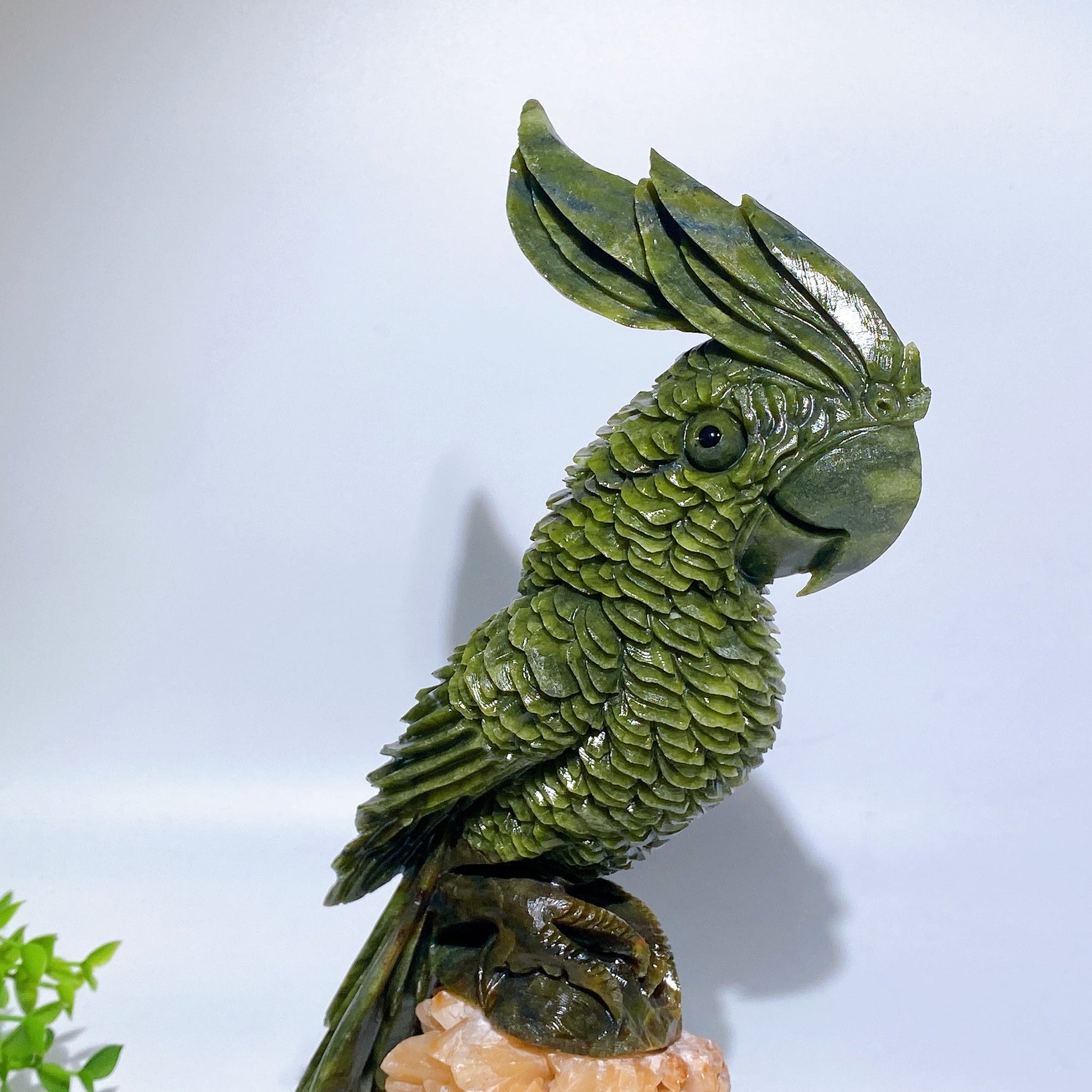 28cm Large Unique Serpentine Parrot Carving with Calcite Cluster Base Crystal Healing Bulk Wholesale