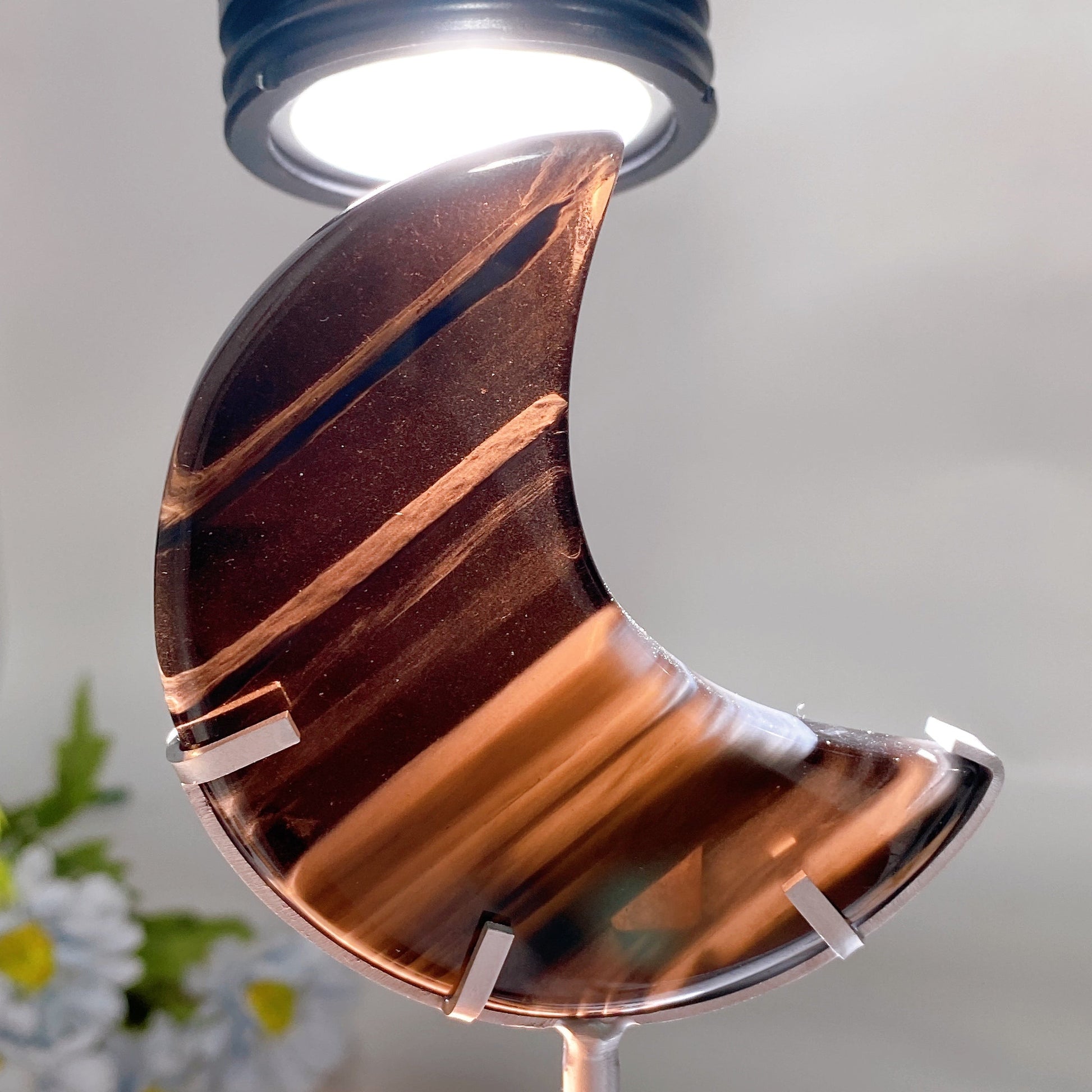 3.2" Midnight Lace Obsidian Moon Carving with Stand Crystal Healing Bulk Wholesale