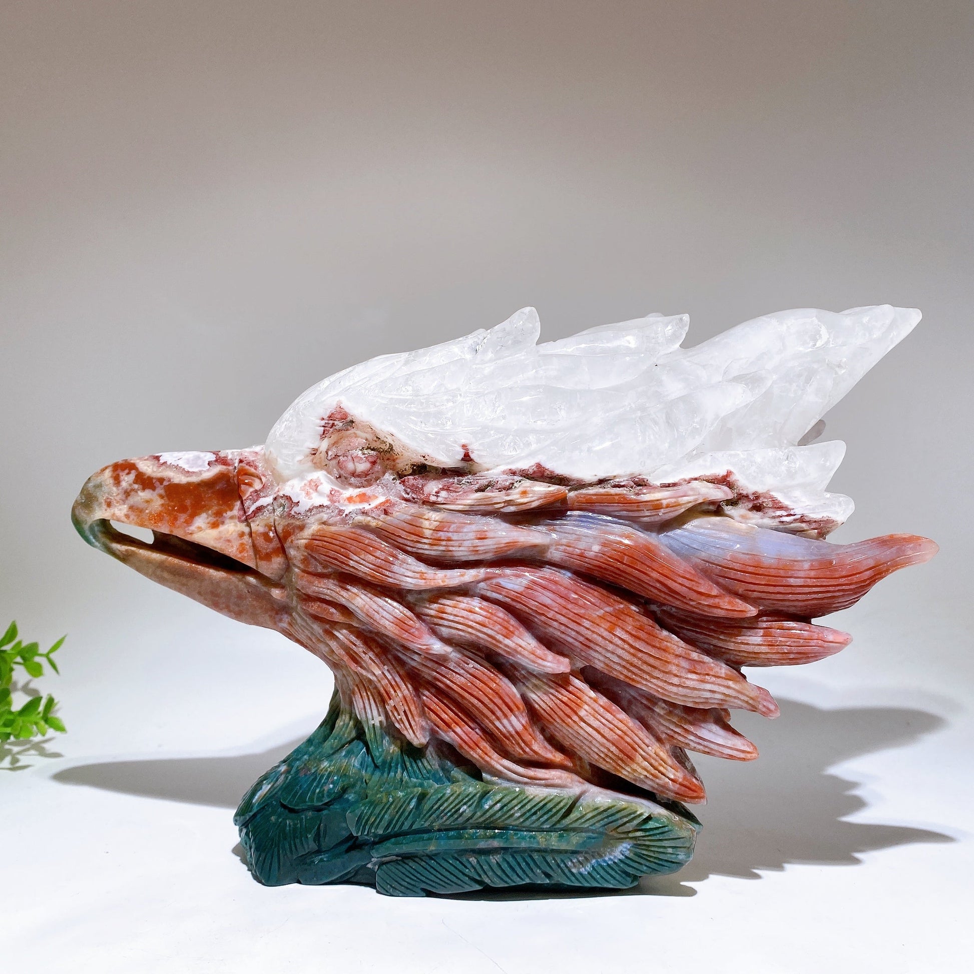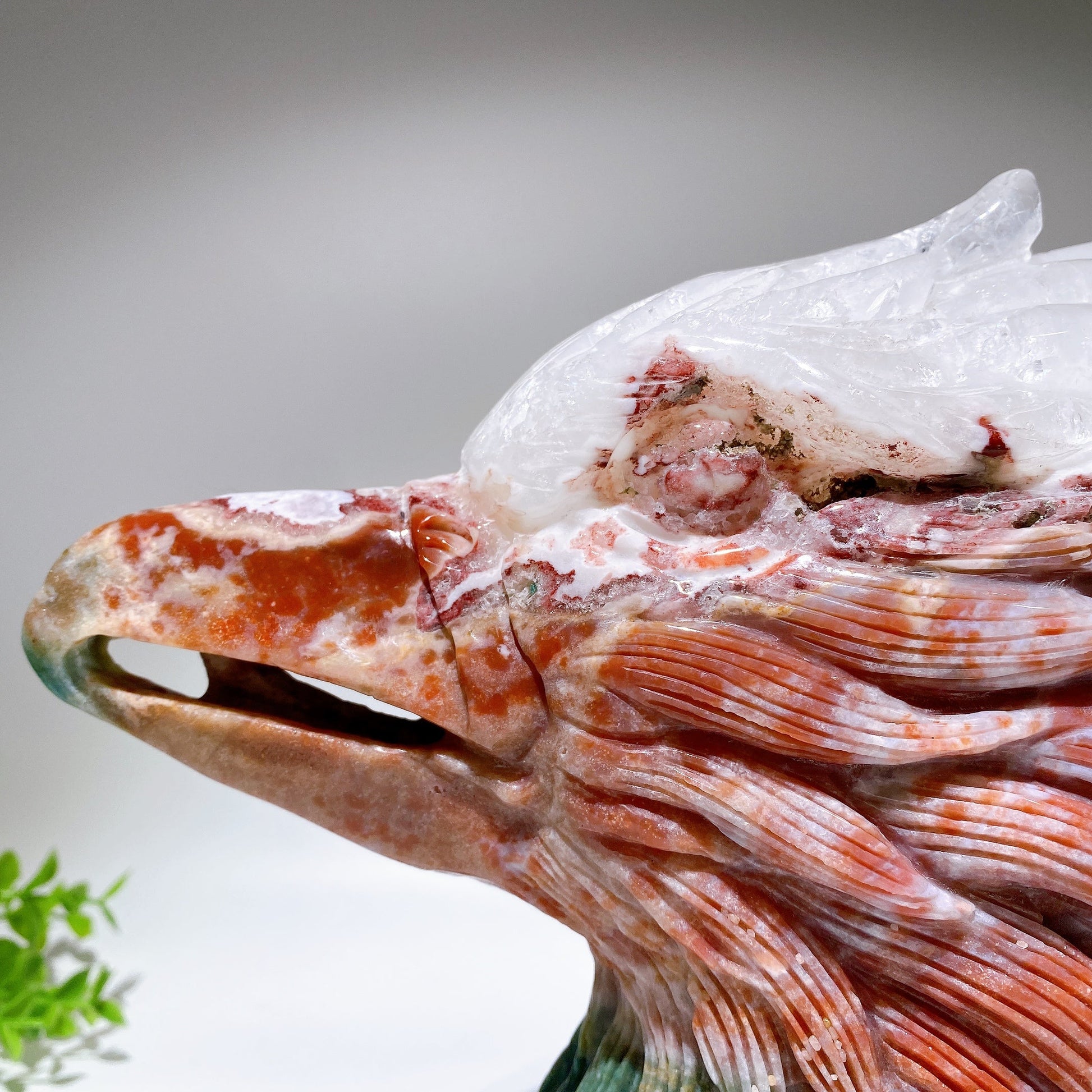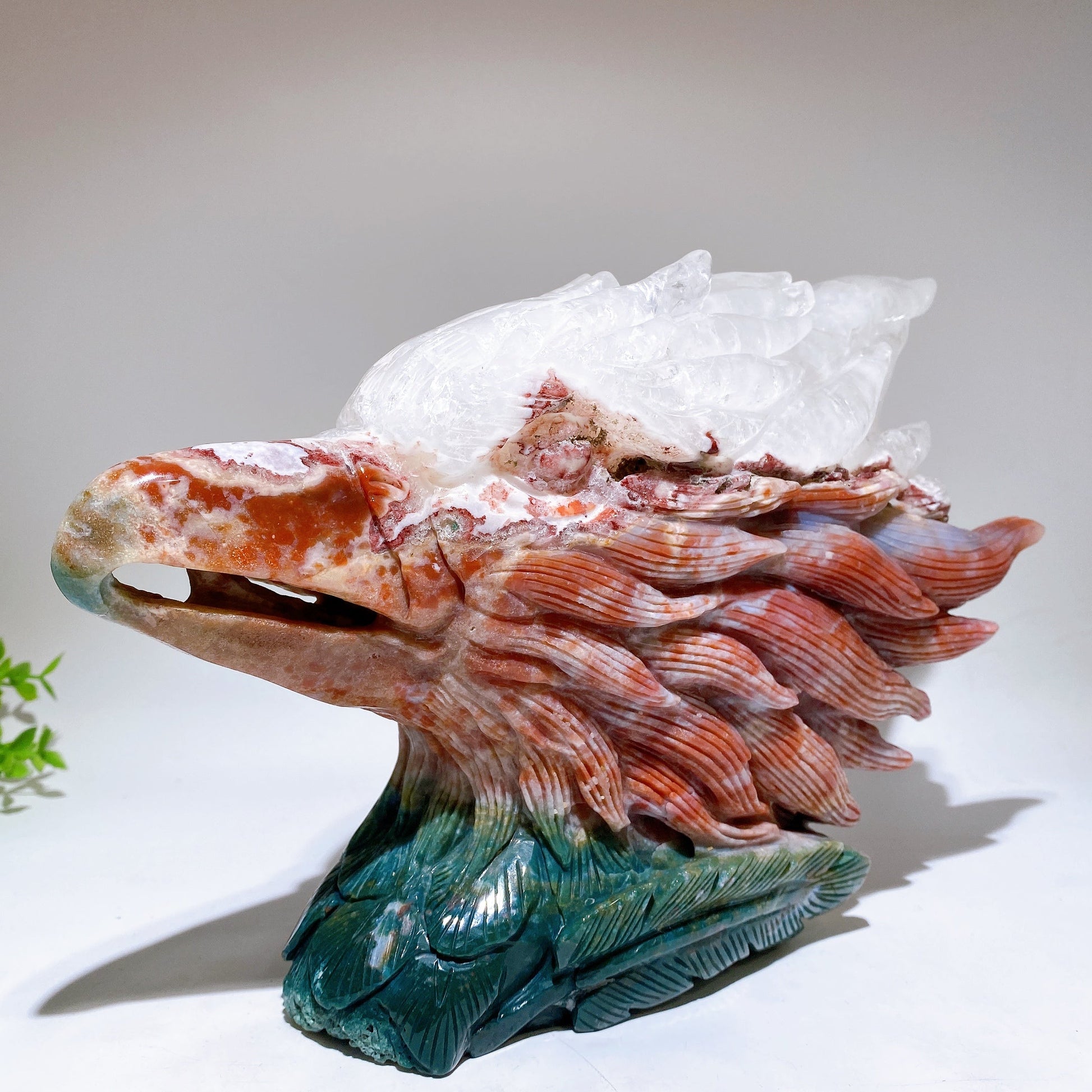 30cm Large Unique Ocean Jasper Growing with Quartz Eagle Head Carving Crystal Healing Bulk Wholesale
