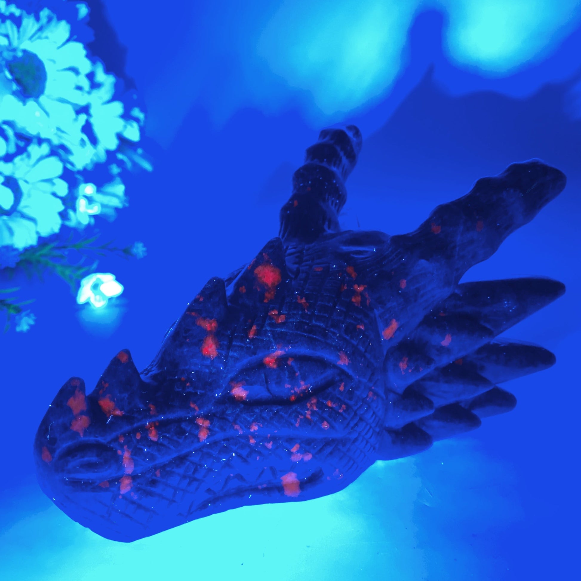 6.2" UV Reactive Ruby In Kyanite Dragon Head Carving Crystal Healing Bulk Wholesale