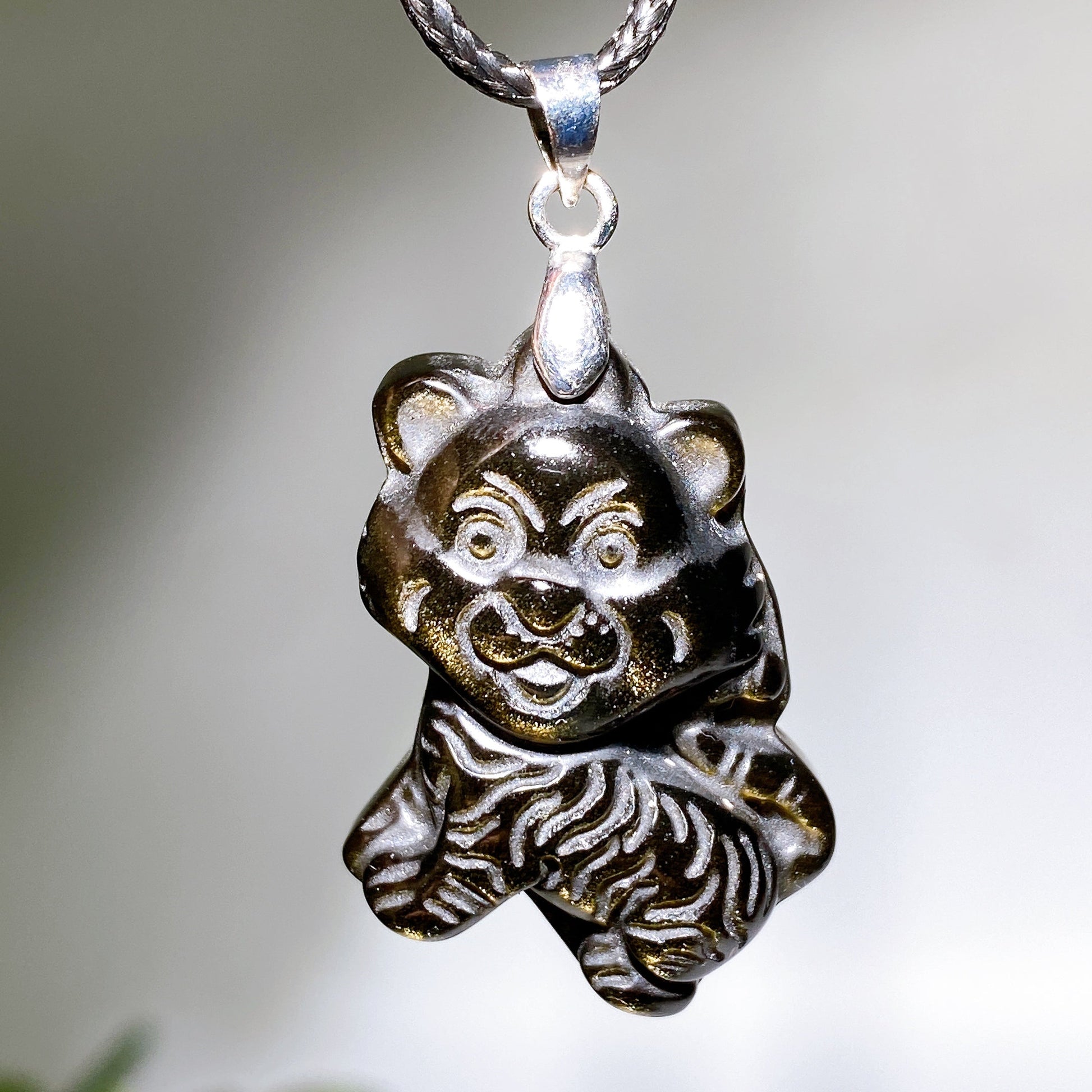 Golden Obsidian Tiger Pendant with Black Cord Crystal Healing Bulk Wholesale