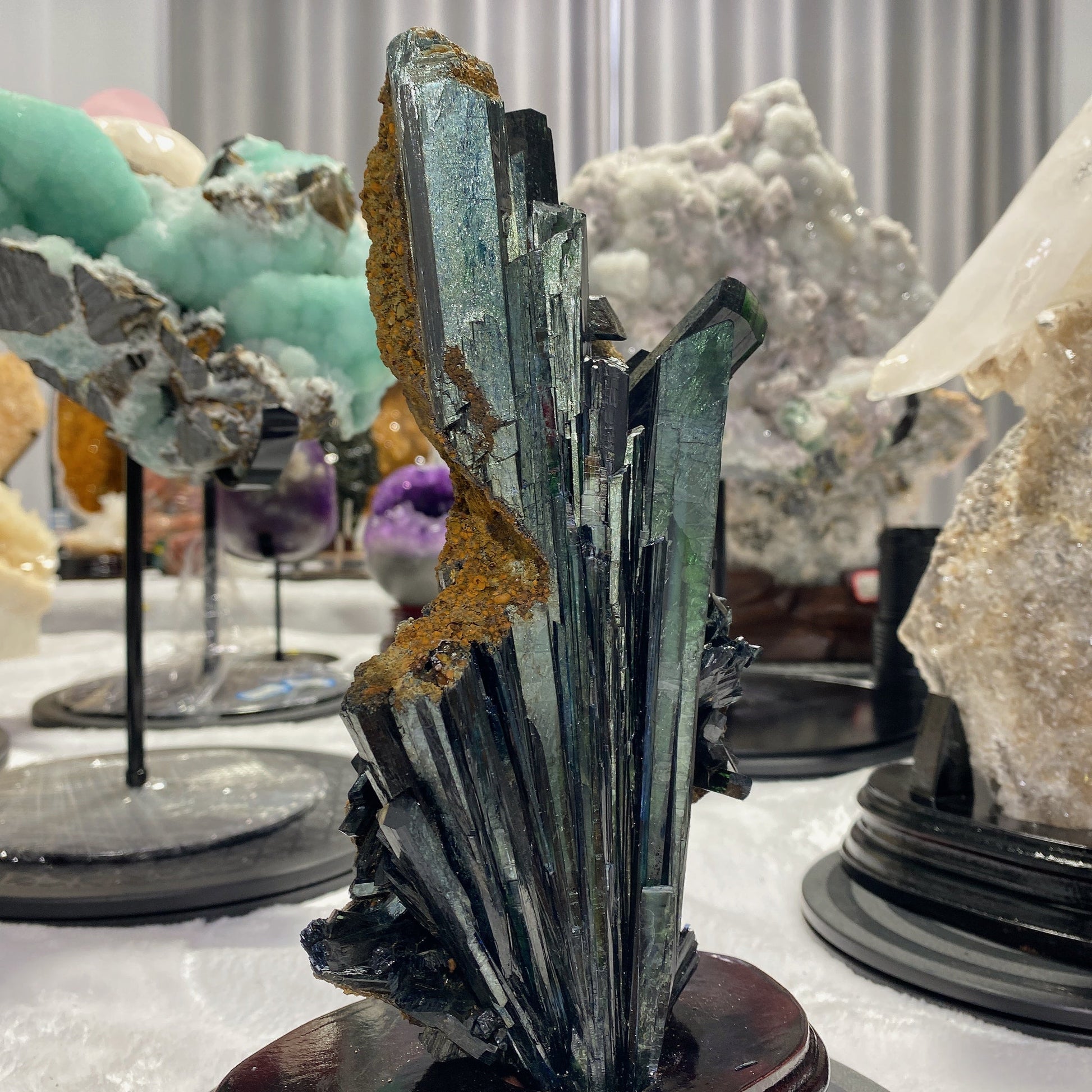 Rare Raw Vivianite Stick Specimen with Wooden Stand Crystal Healing