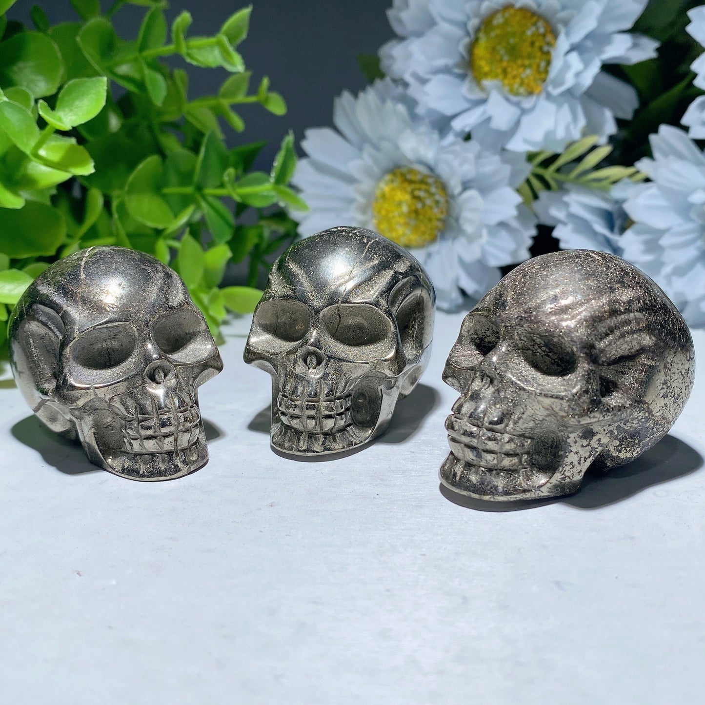 1.7" Pyrite Skull Carvings Bulk Wholesale