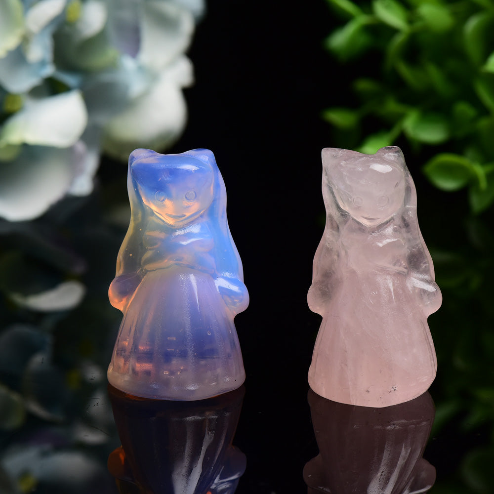 1.9" Rose Quartz Pink Opalite Sailor Moon Carving Bulk Wholesale