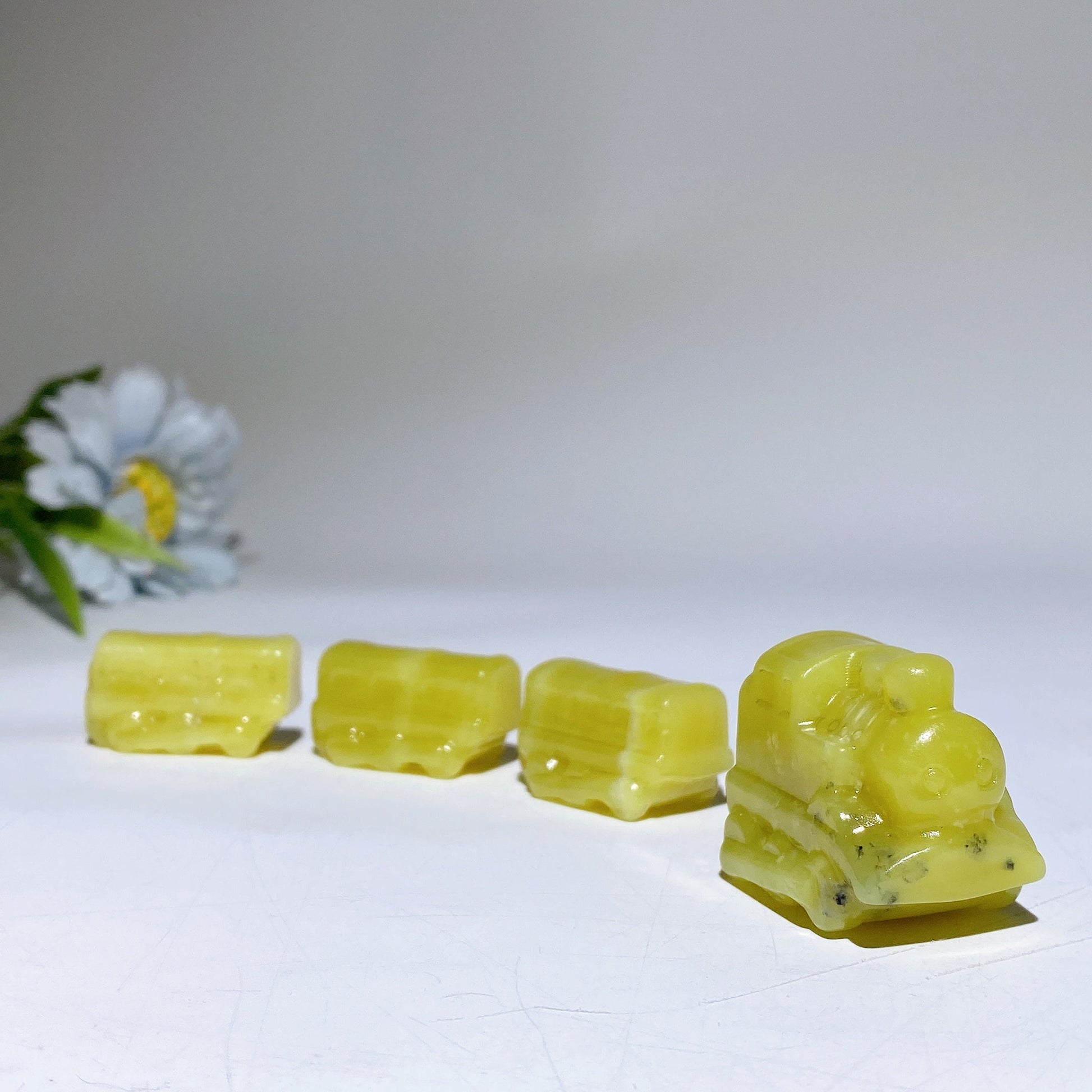 13cm Lemonite Jade Four-Pieces Train Carvings Crystal Healing Bulk Wholesale