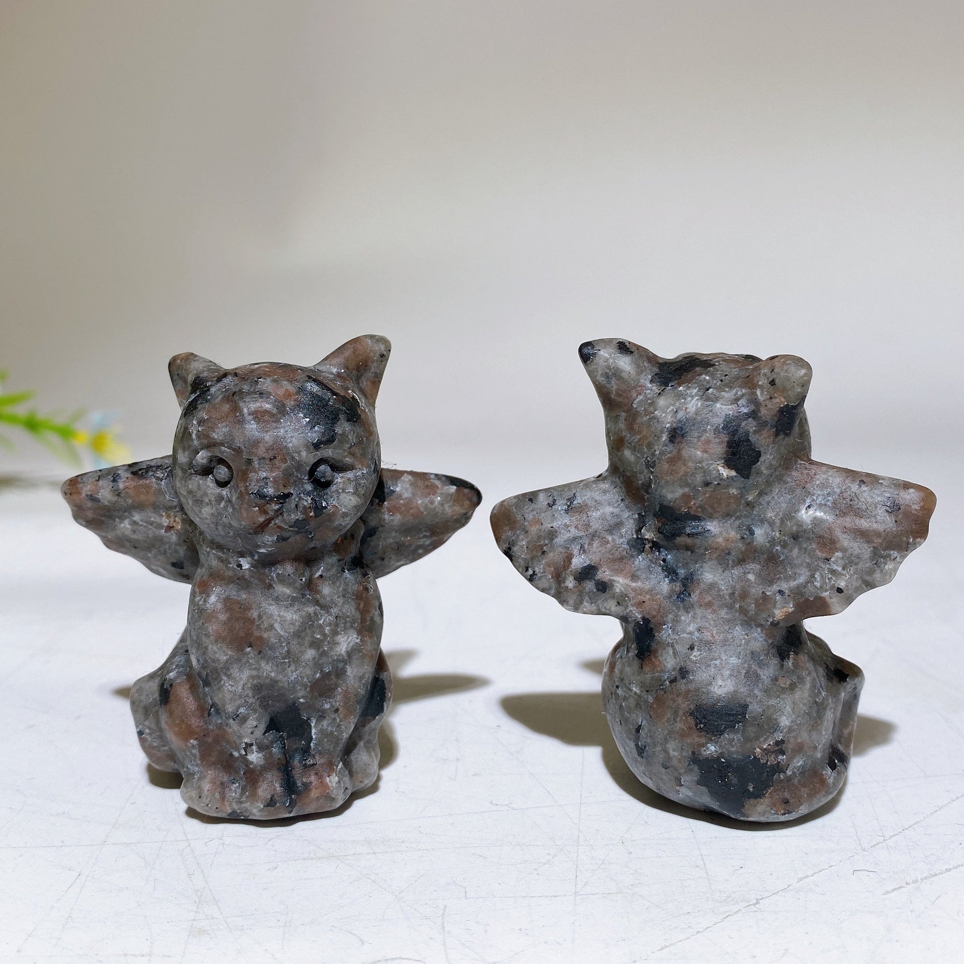 2.1" Black Obsidian Yooperlite Cat with Wings Crystal Carving Crystal Healing Bulk Wholesale