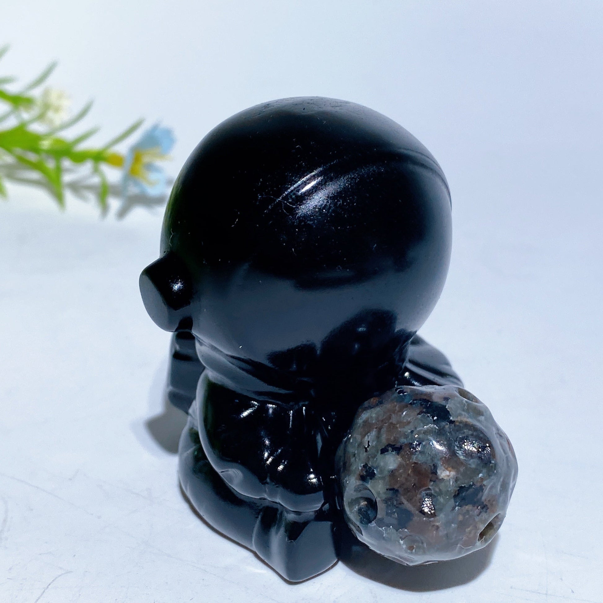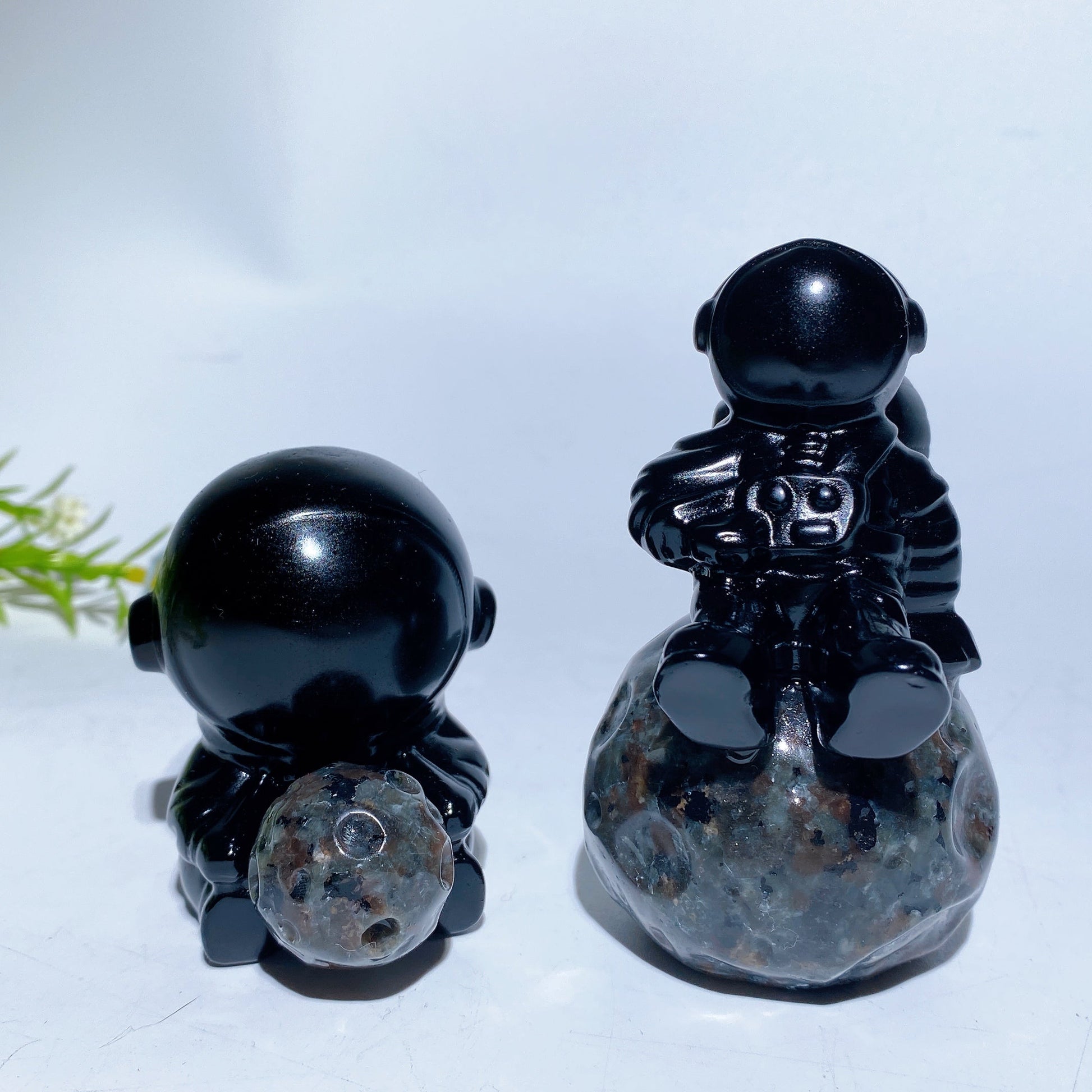 2.3" 3.3" Black Obsidian Spaceman on Yooperlite Planet Carving Crystal Healing Bulk Wholesale