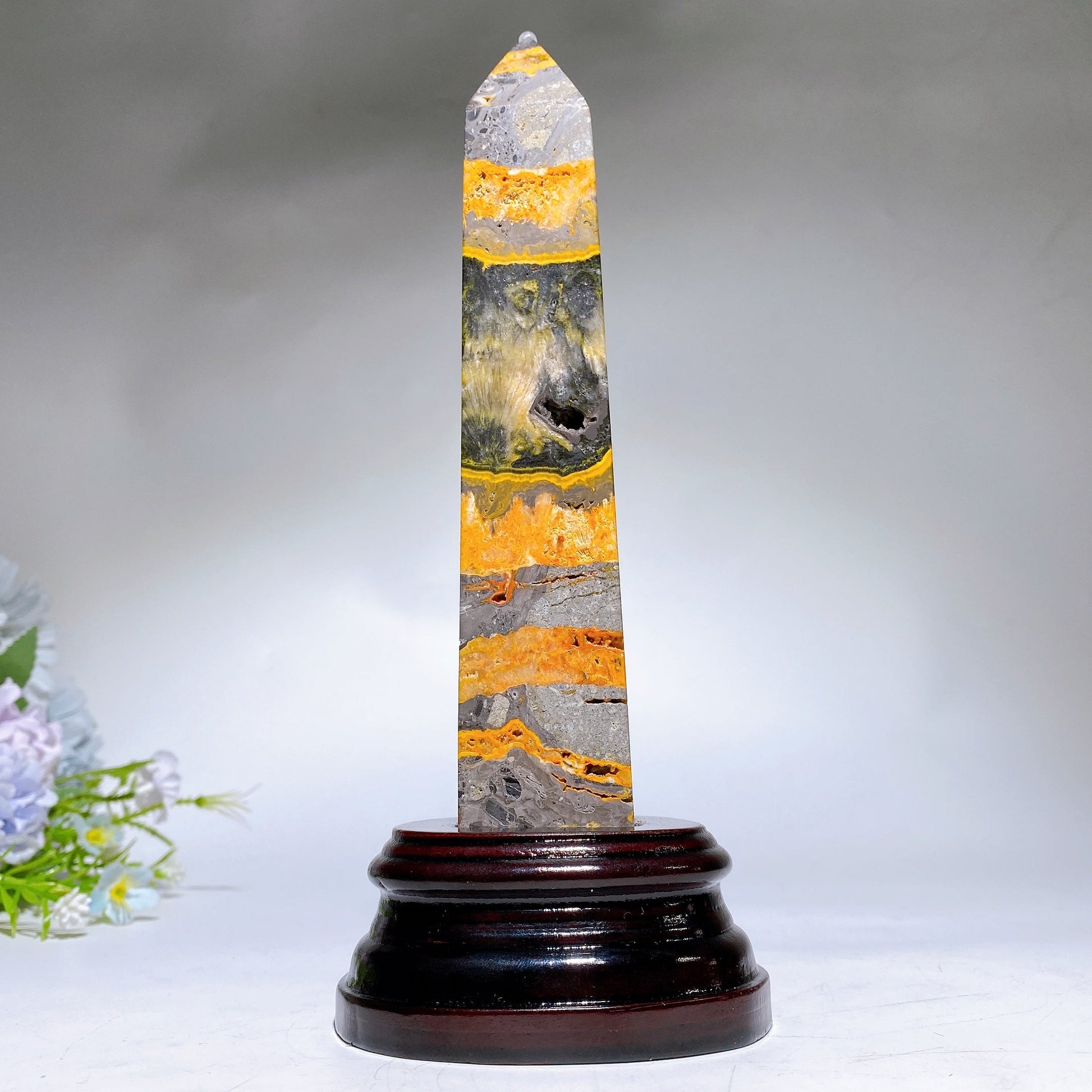 21cm Bumblebee Jasper Tower with Wooden Stand Crystal Healing Bulk Wholesale