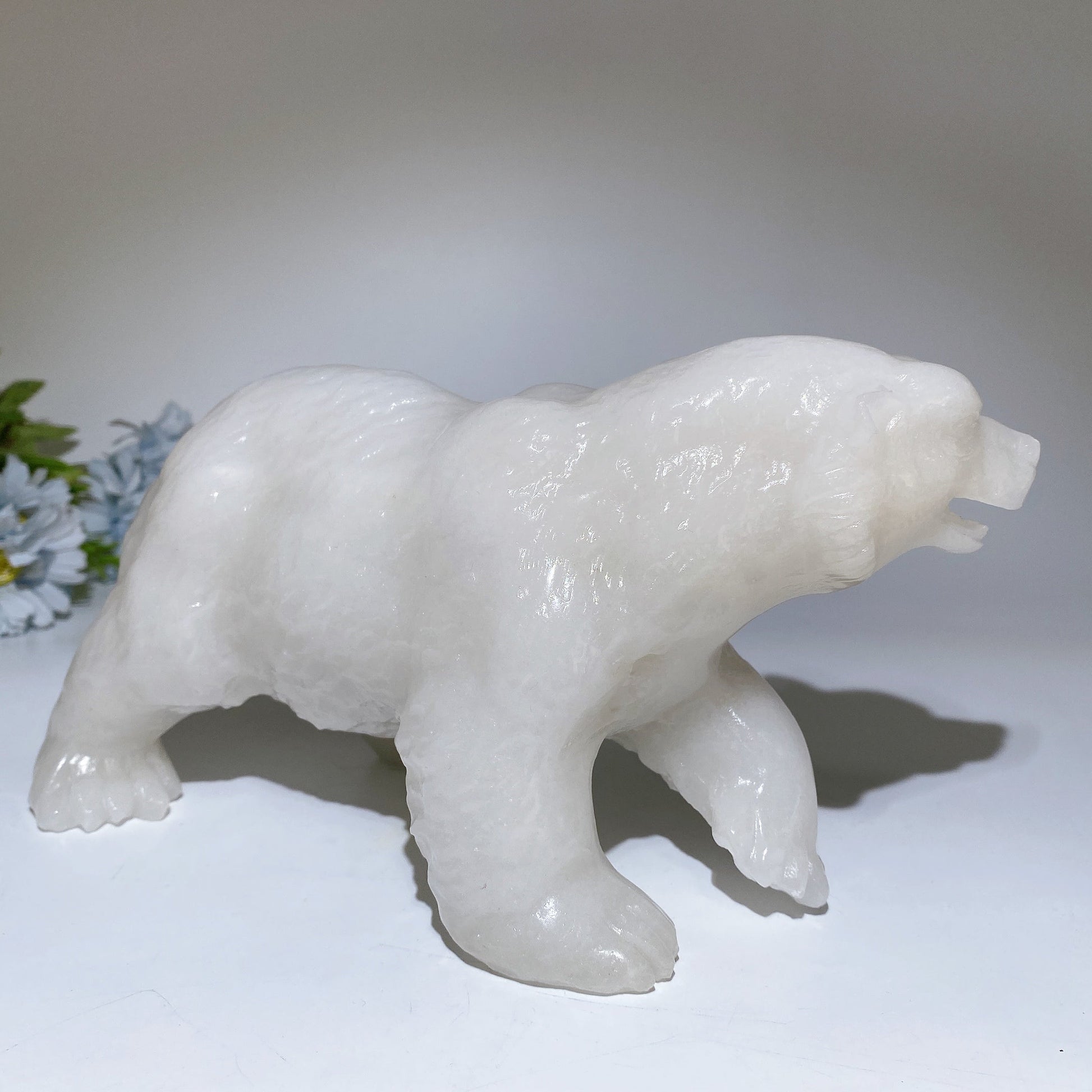 26cm White Jade Polar Bear Carving Crystal Healing Bulk Wholesale