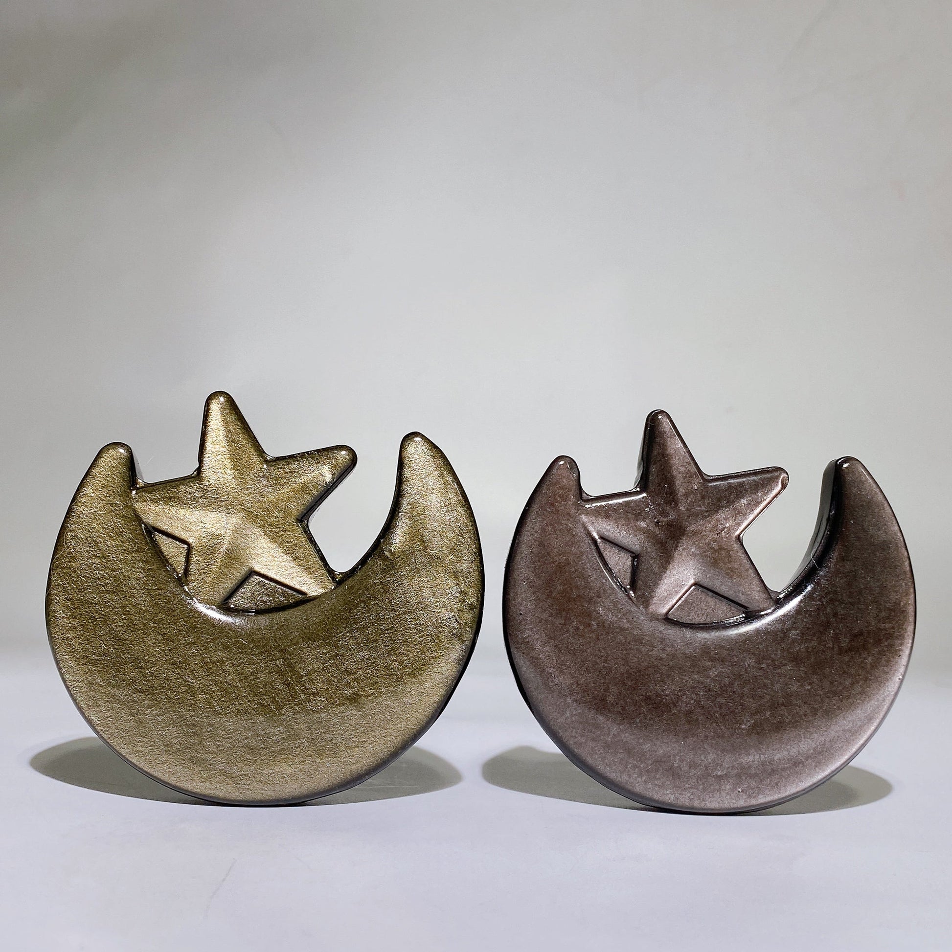 3.3" Golden Obsidian Silver Obsidian Moon & Star Carving Crystal Healing Bulk Wholesale
