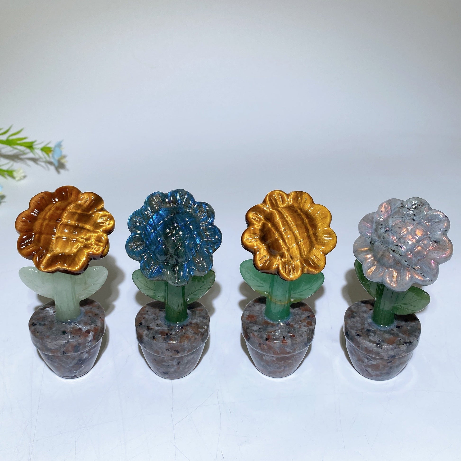 3.5" Yellow Tiger Eye Labradorite Flower Bonsai with Yooperlite Pot Carvings Crystal Healing Bulk Wholesale