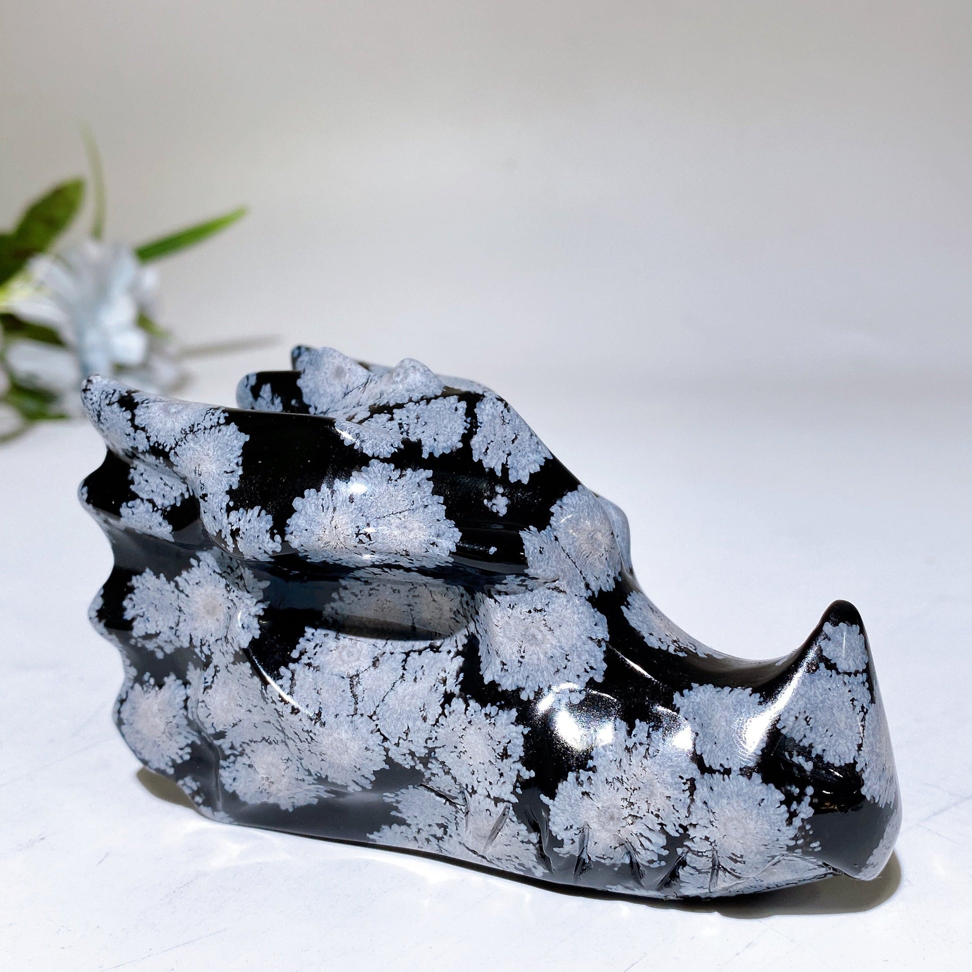 3.7" Snowflake Obsidian Dragon Head Carving Crystal Healing Bulk Wholesale