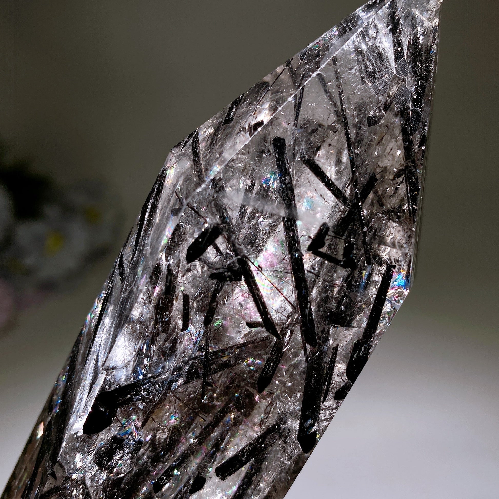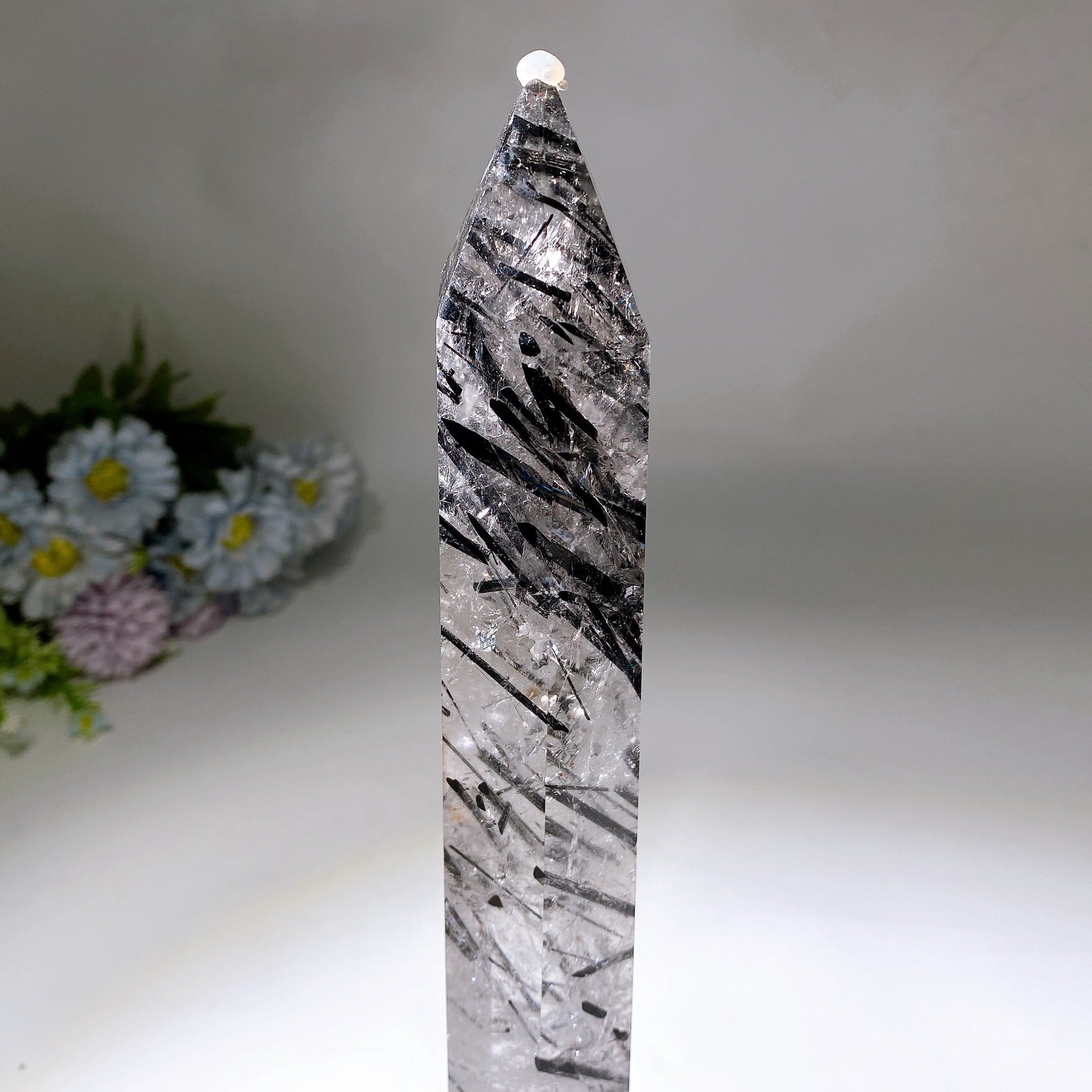 37cm Large Unique Black Tourmaline In Quartz Tower with Rainbow Crystal Healing Bulk Wholesale