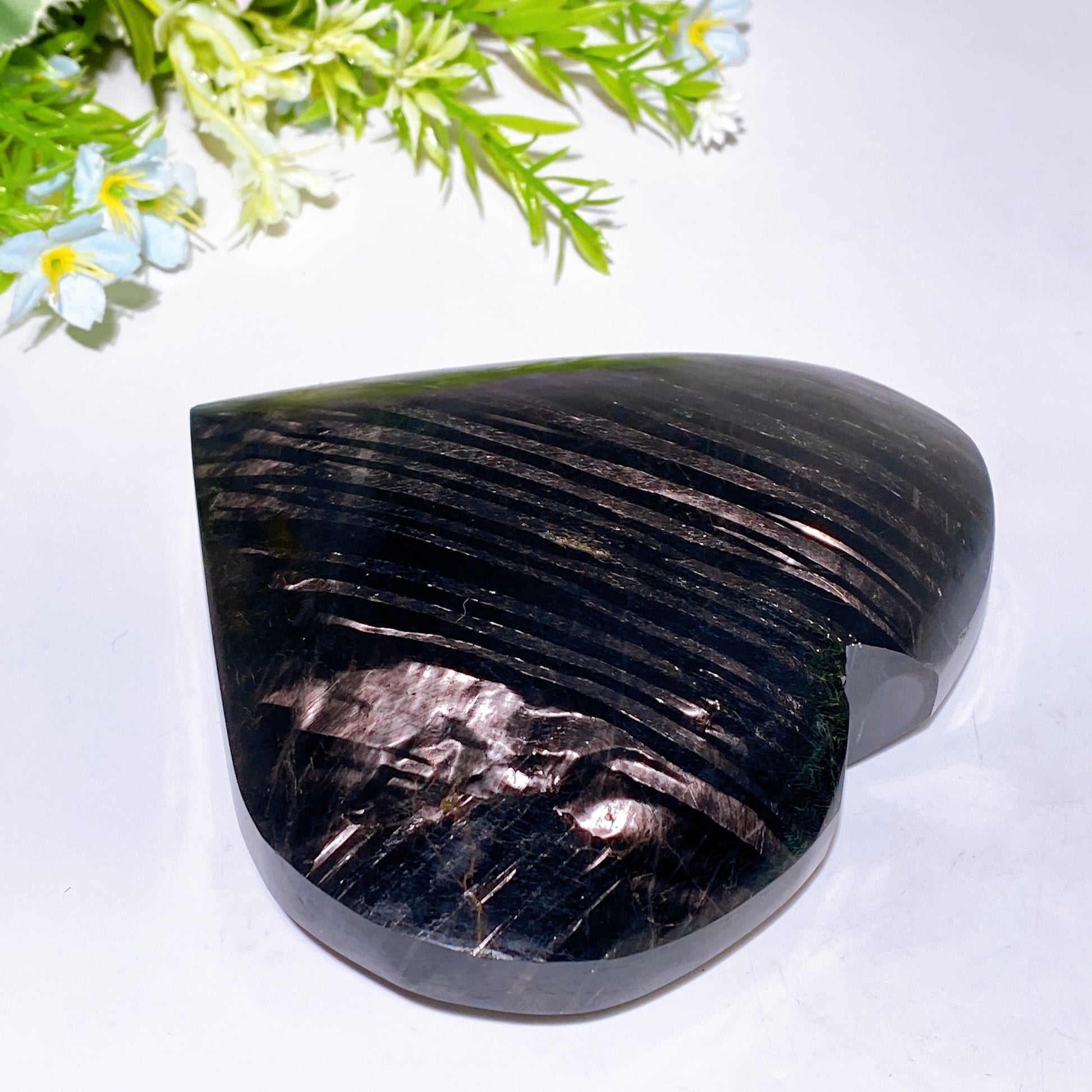 5.0" Large Unique Hypersthene Heart Carving with Stand Crystal Healing Bulk Wholesale