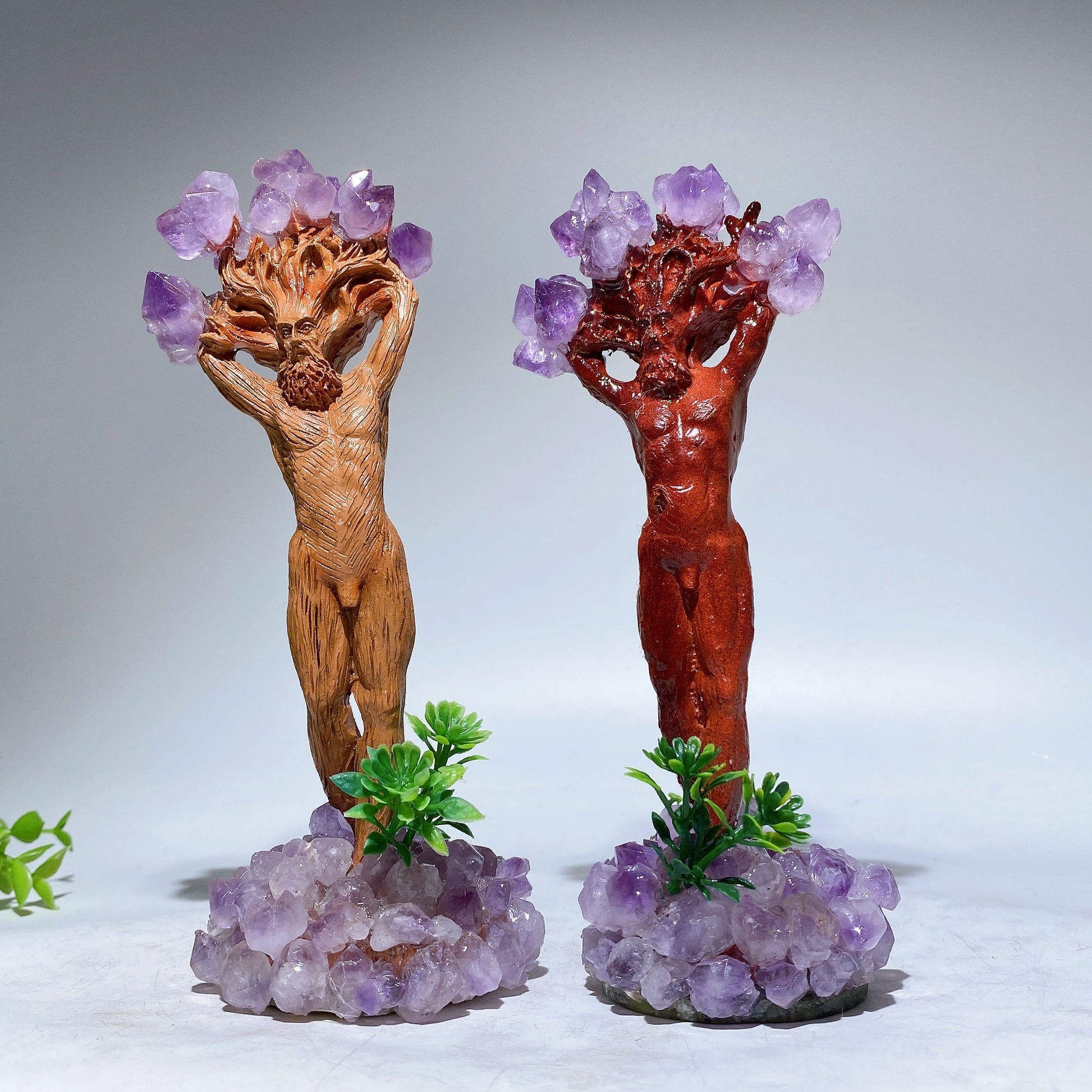 6.1" Amethyst Wooden Tree Elf Carving Crystal Healing Bulk Wholesale