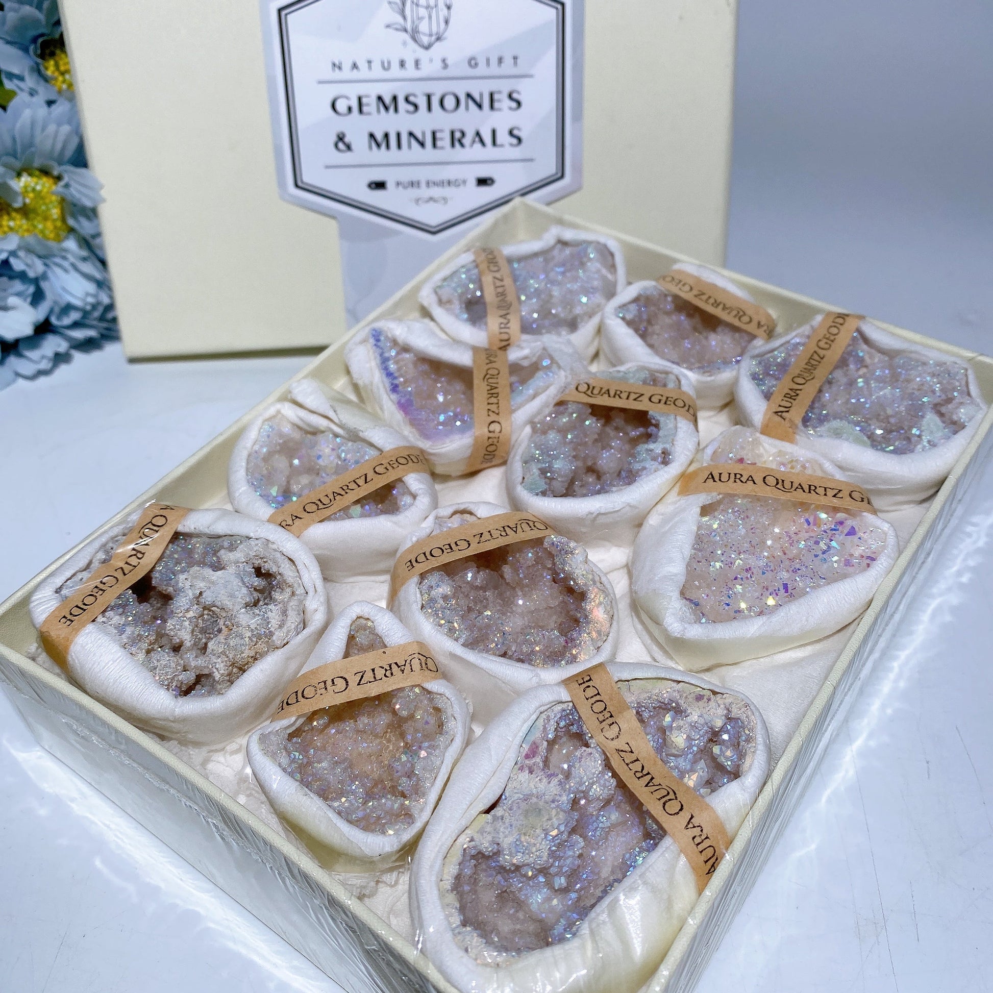 Aura Druzy Agate Geode Black Tourmaline Raw Stone Crystal Healing Bulk Wholesale