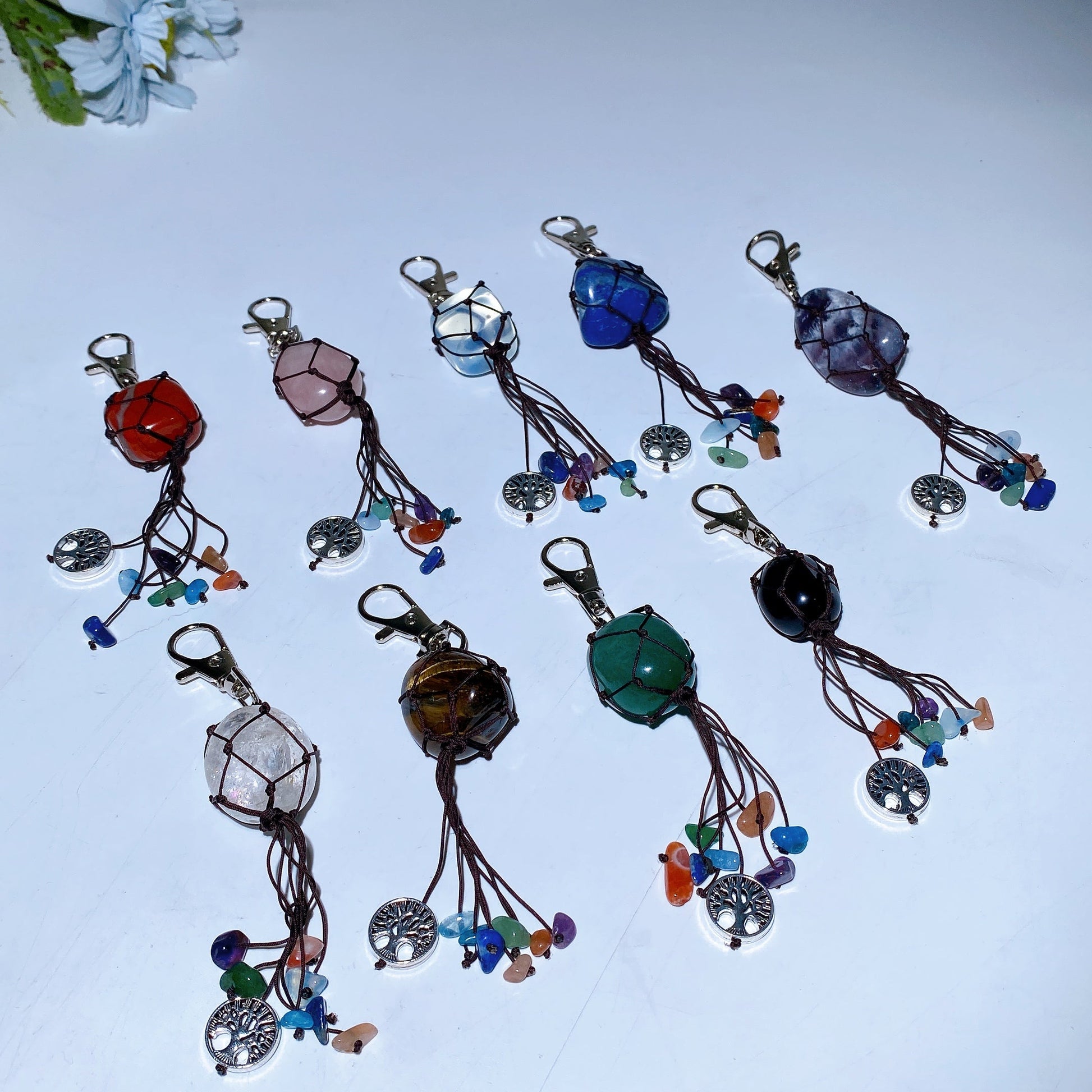 Crystal Key Chain with Chakra Chips Tassel & Metal Life Tree Decor Crystal Healing Bulk Wholesale