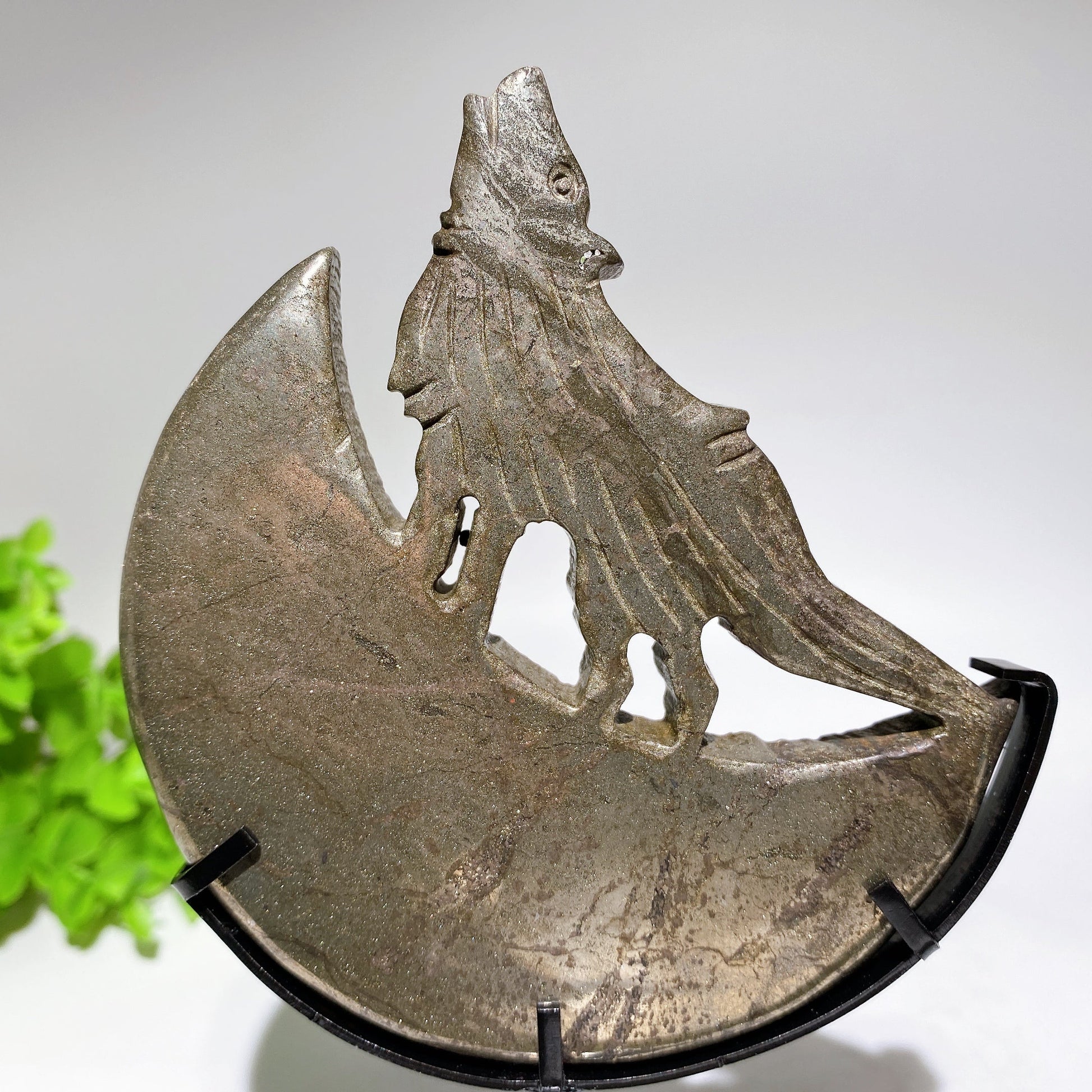 Crystal Wolf on Moon Carving with Stand Free Form Crystal Healing Bulk Wholesale