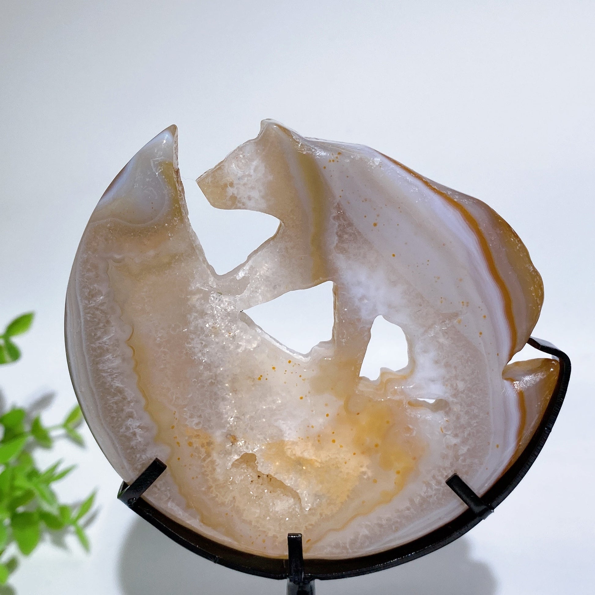 Druzy Agate Bear on Moon Carving with Stand Crystal Healing Bulk Wholesale