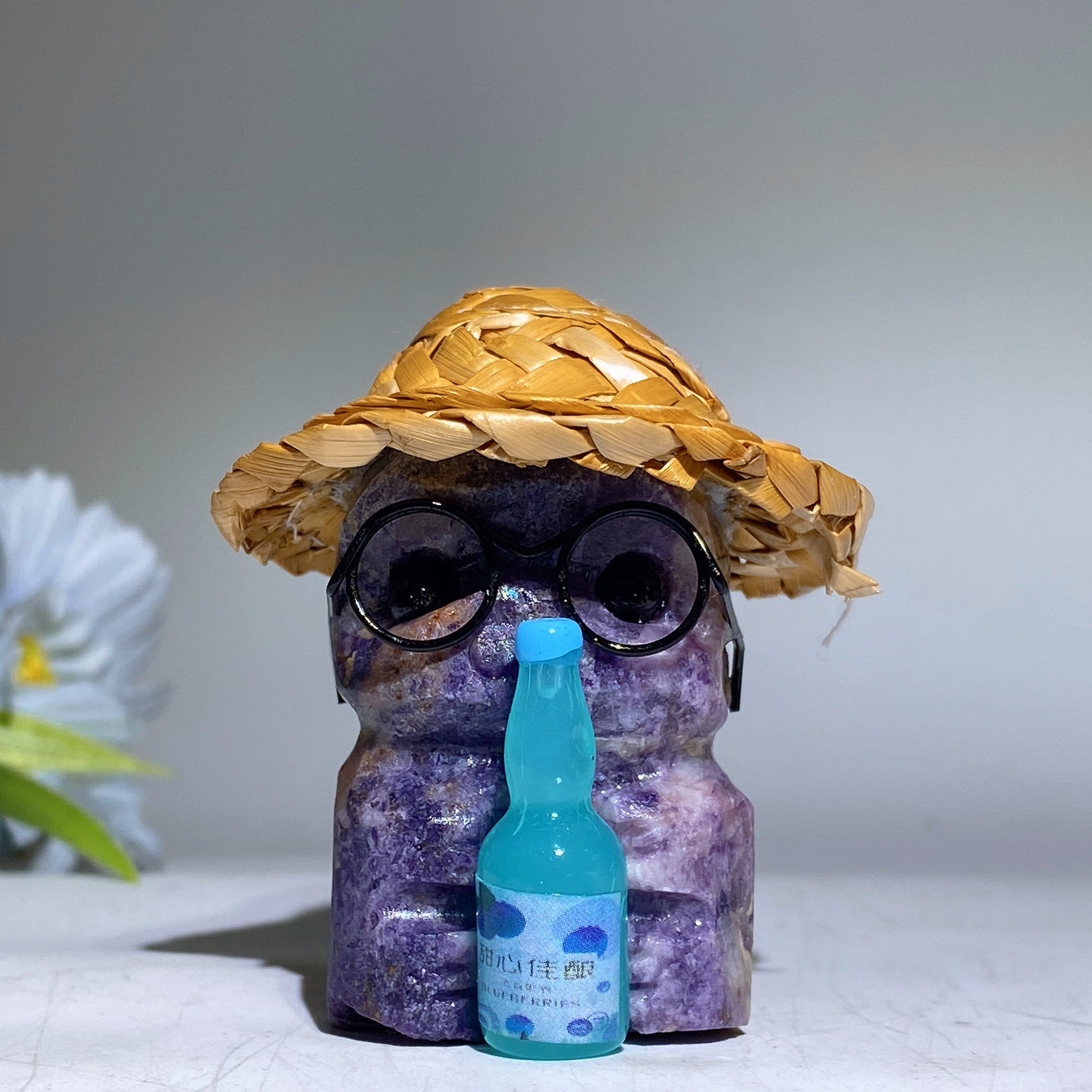 Raw Crystal Child Carving with Straw Hat Crystal Healing Bulk Wholesale